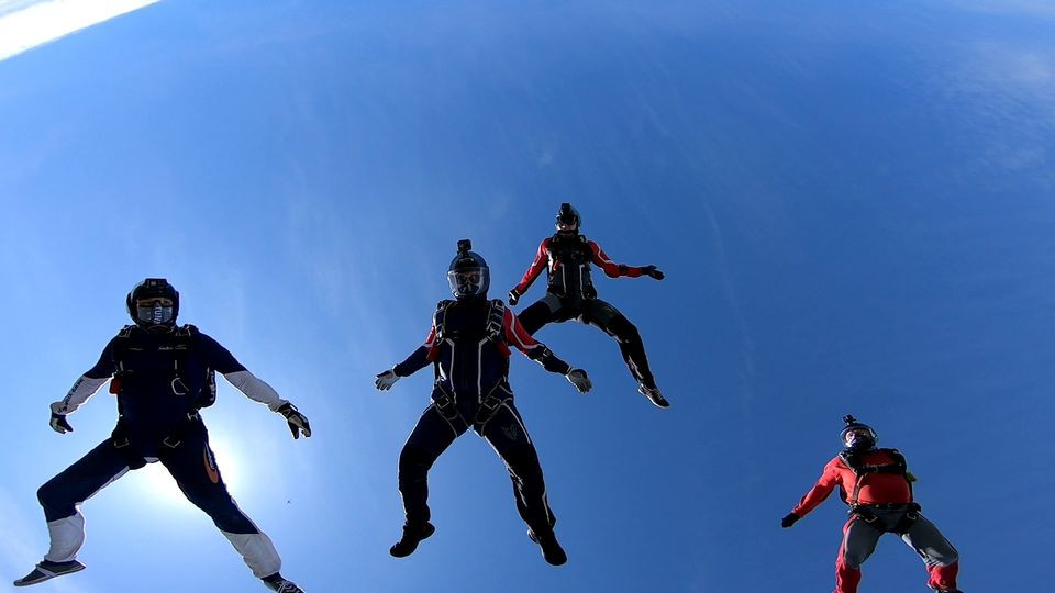 Manuel bringt euch in einem entschleunigten Umfeld zunächst die grundlegenden Techniken für den Horizontal-Flug auf Bauch und/oder Rücken und dann das Fine-Tuning für Griffe und große Formationen bei.