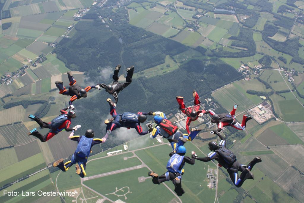 - Sonntags wachsen die Gruppen weiter zusammen und Abends wollen wir alle zusammen aus dem Flieger springen.