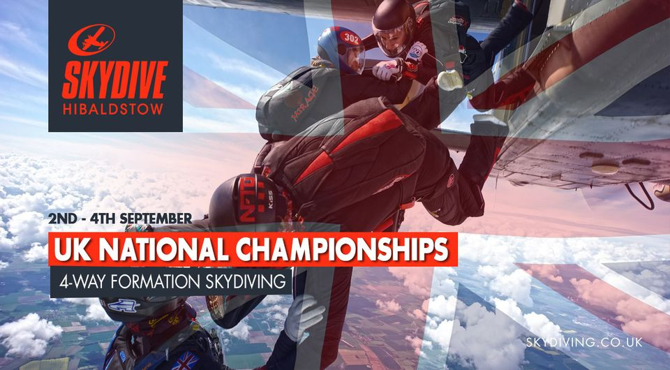 We are pleased to announce that we will be hosting the 4-way UK National Skydiving Championships again. First held at our dropzone in 1996, this has become the premier skydiving competition in the UK. There's always a great buzz at our dropzone during the comp, so we hope that you and your team will come and compete.